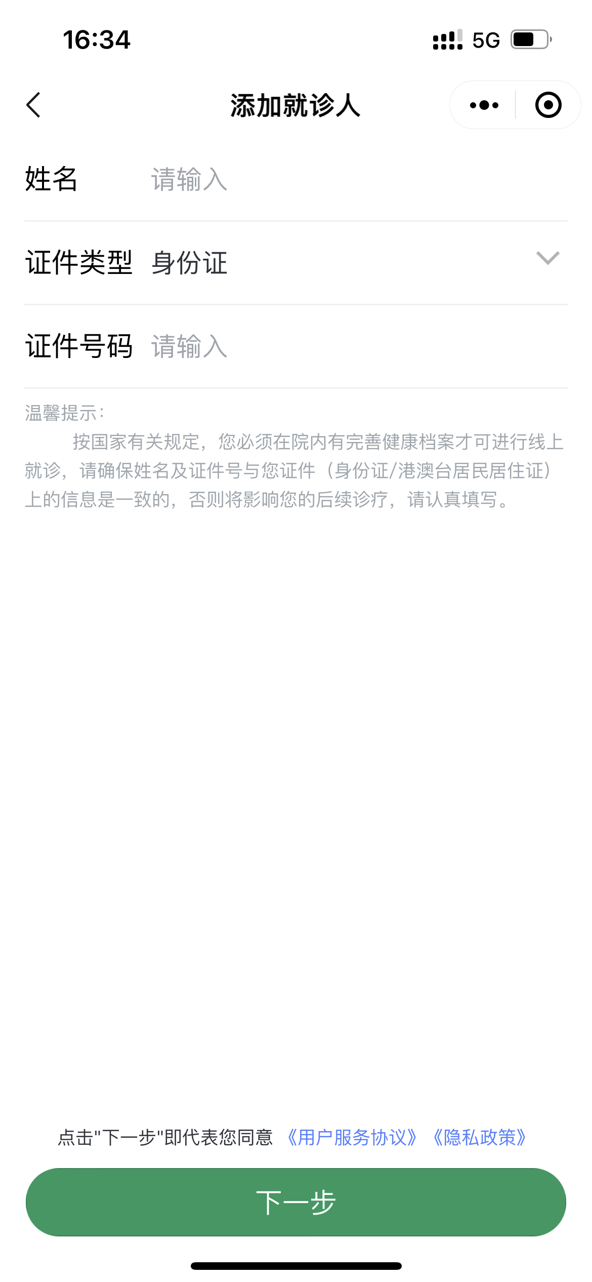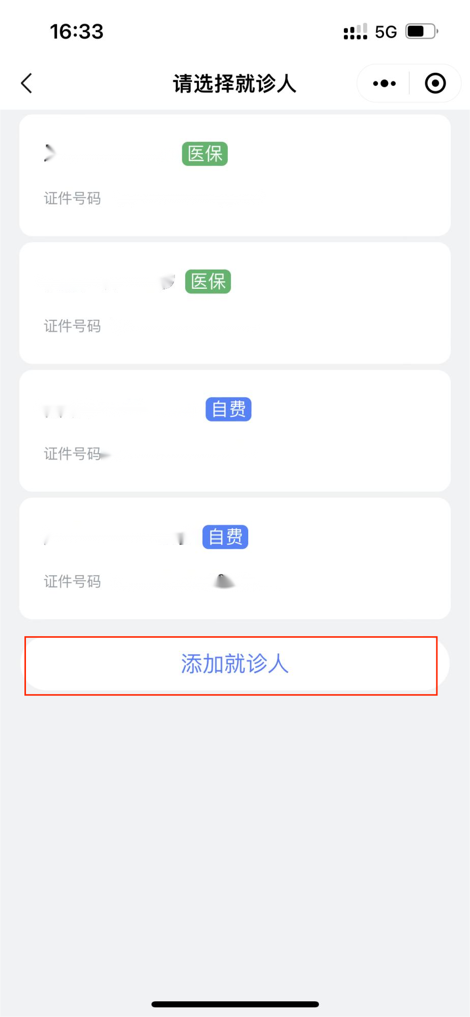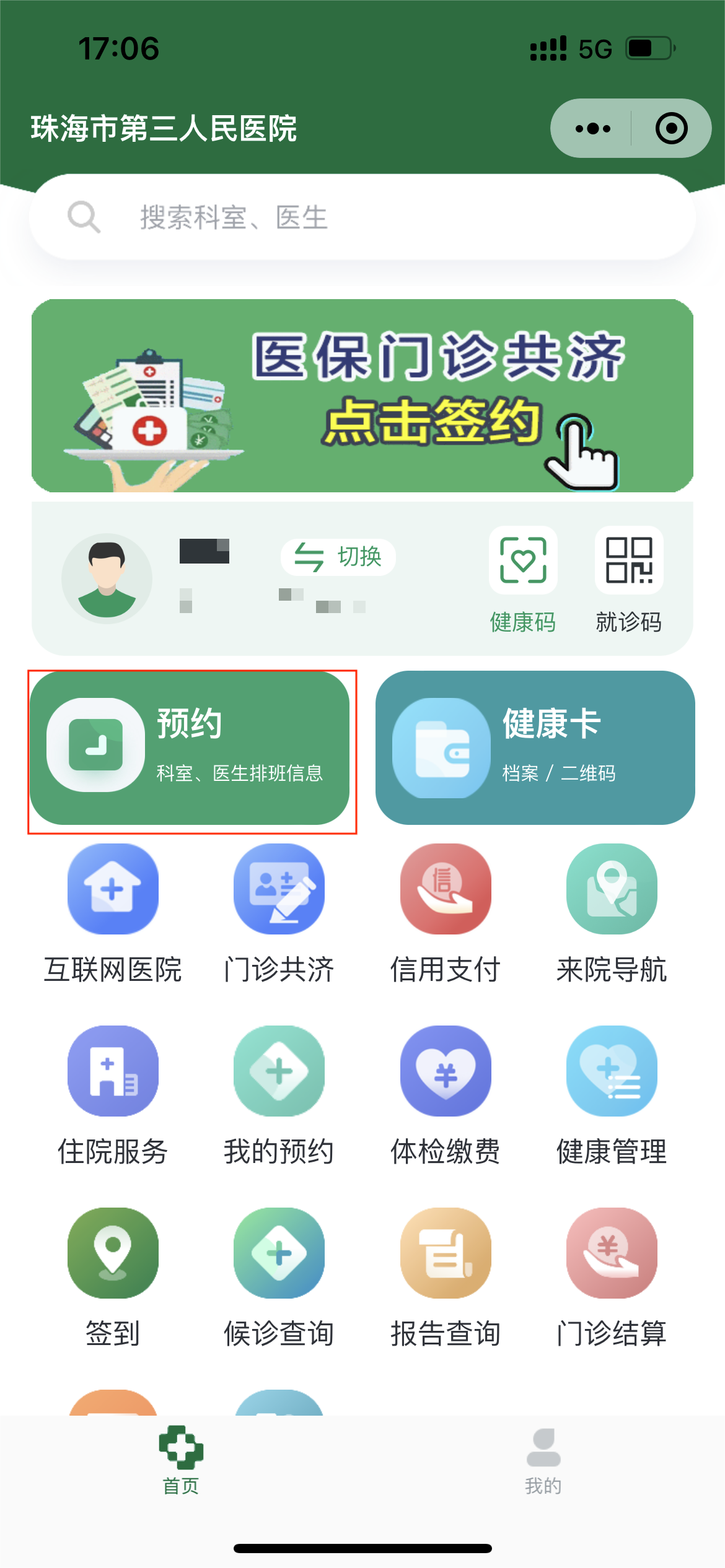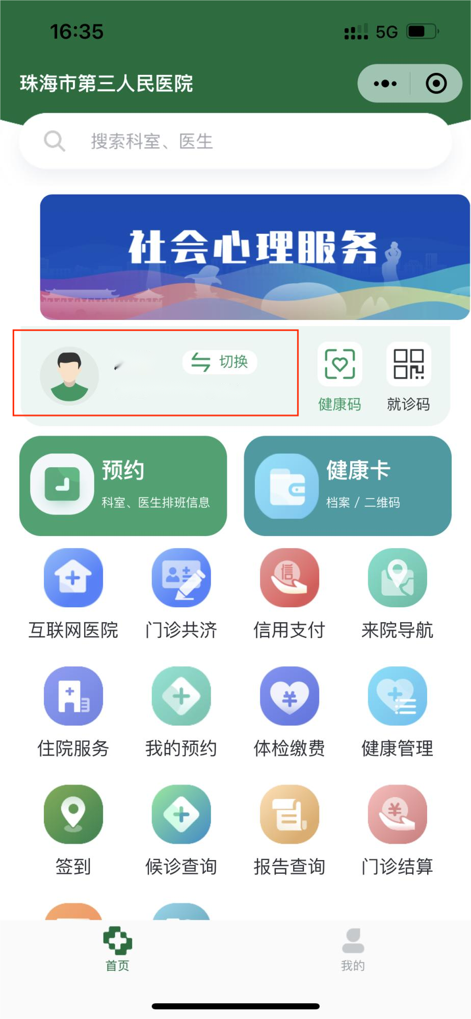 2. 进入就医服务→预约挂号,选择需要预约挂号的就诊人,若无绑定就诊人则需添加就诊人信息。