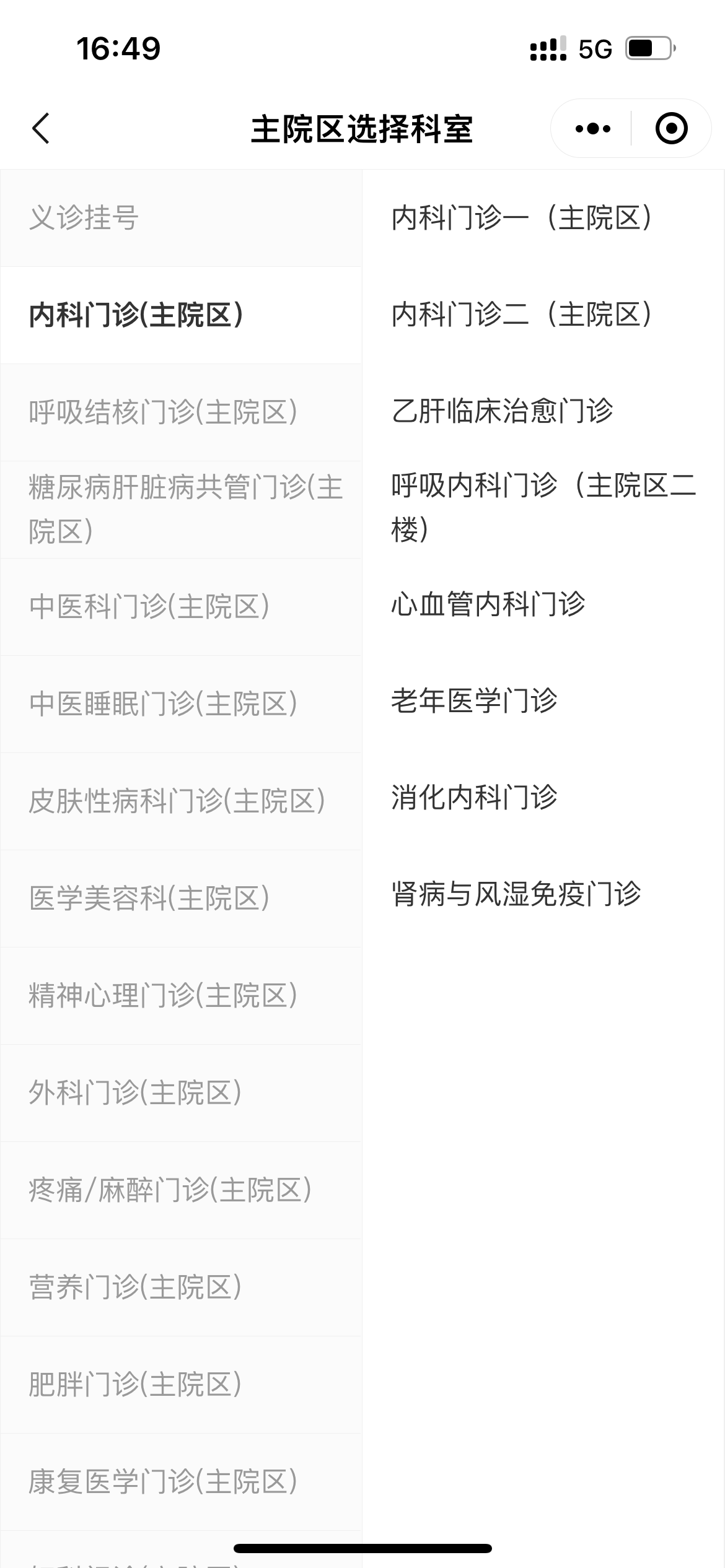 3.在预约挂号小程序页点击“预约”,选择就诊院区及科室。