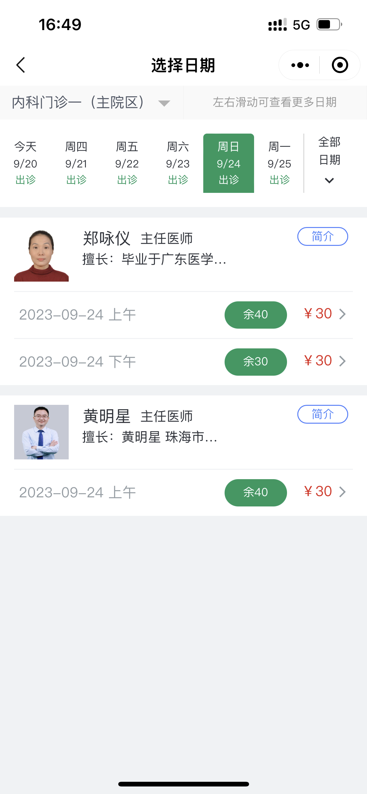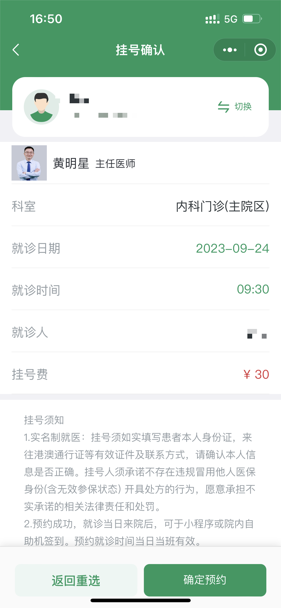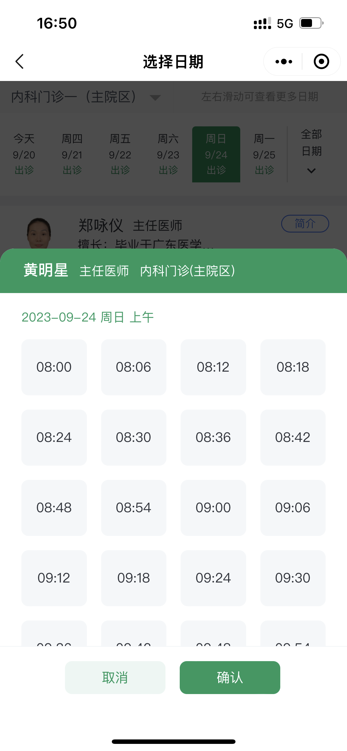 4.选择看诊时间、看诊医生,确定预约。