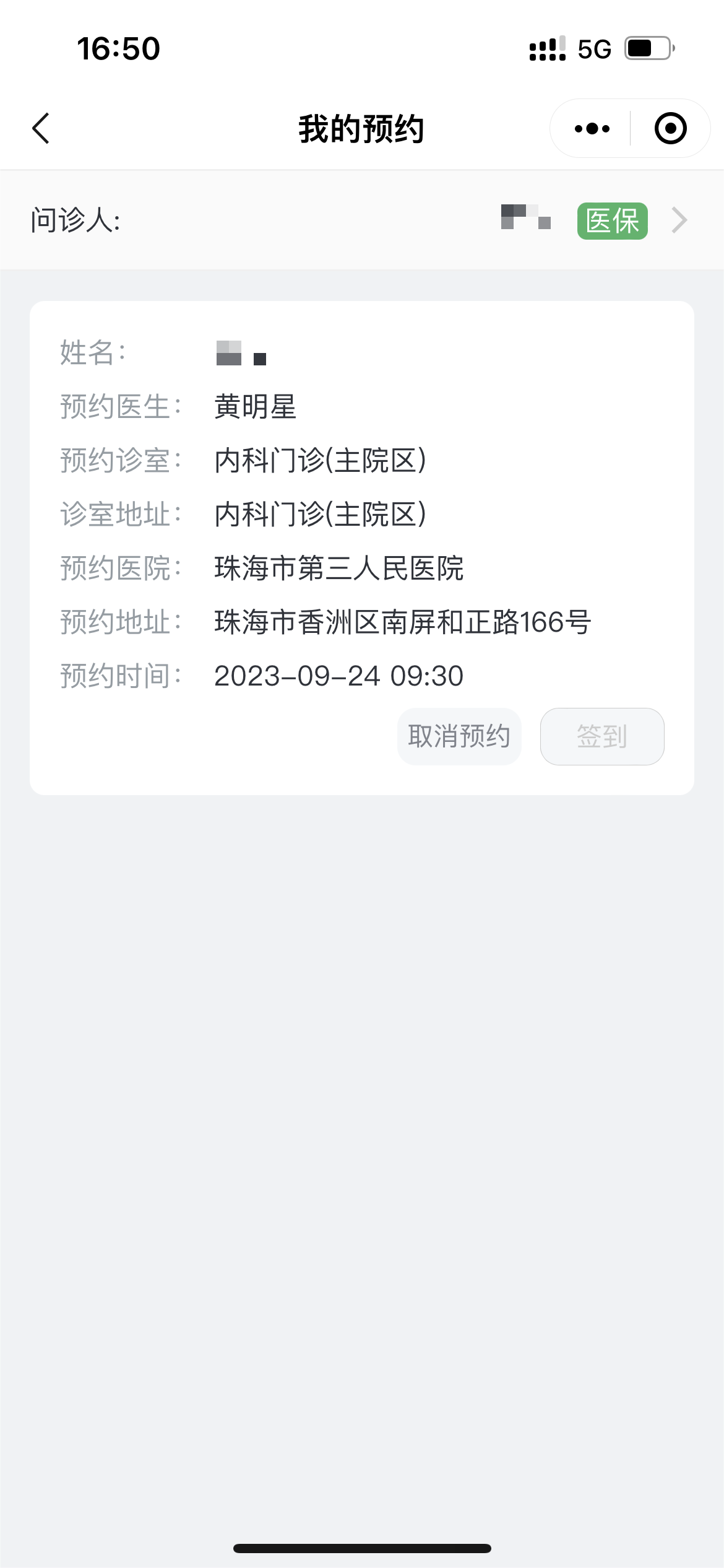 6.支付成功后,点击查看我的预约,根据挂号详情指引,提前15分钟前往对应院区签到就医。