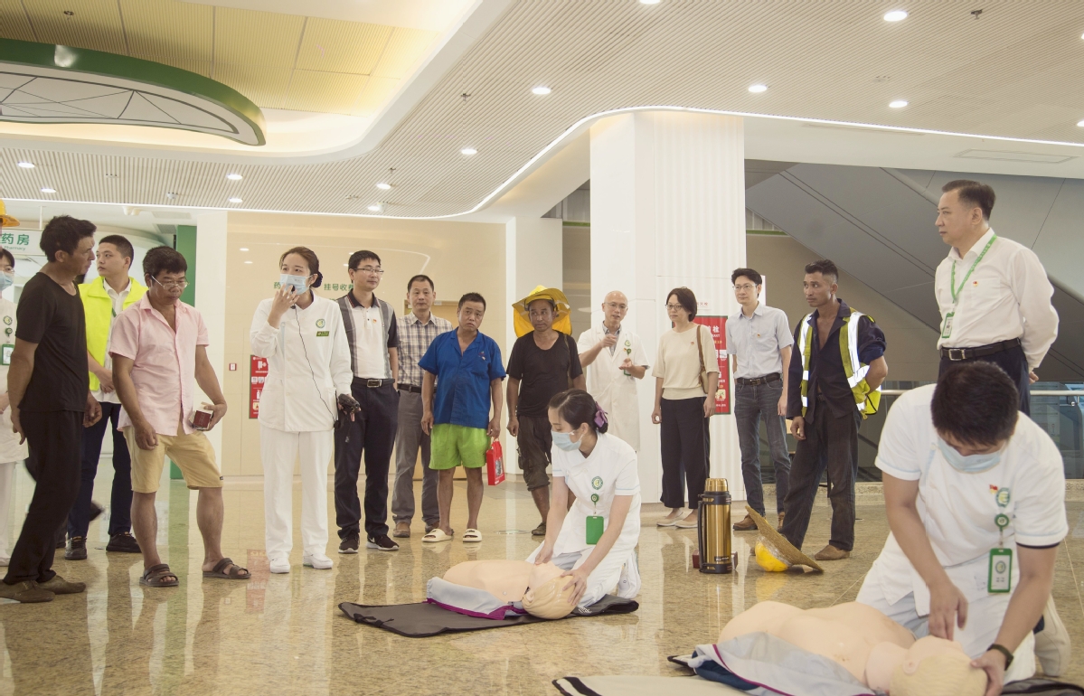 本次活动分为职业健康义诊、健康宣教及急救培训三个部分。珠海三院中医科·康复医学科、职业卫生科、内科、皮肤科、急诊科等科室专家为户外作业者免费提供内科常见疾病、皮肤疾病等诊疗,并提供体格检查、中医号脉等服务。义诊过程中,医生还引导产业工人建立起自我保健、劳逸结合、身心健康的生活方式。