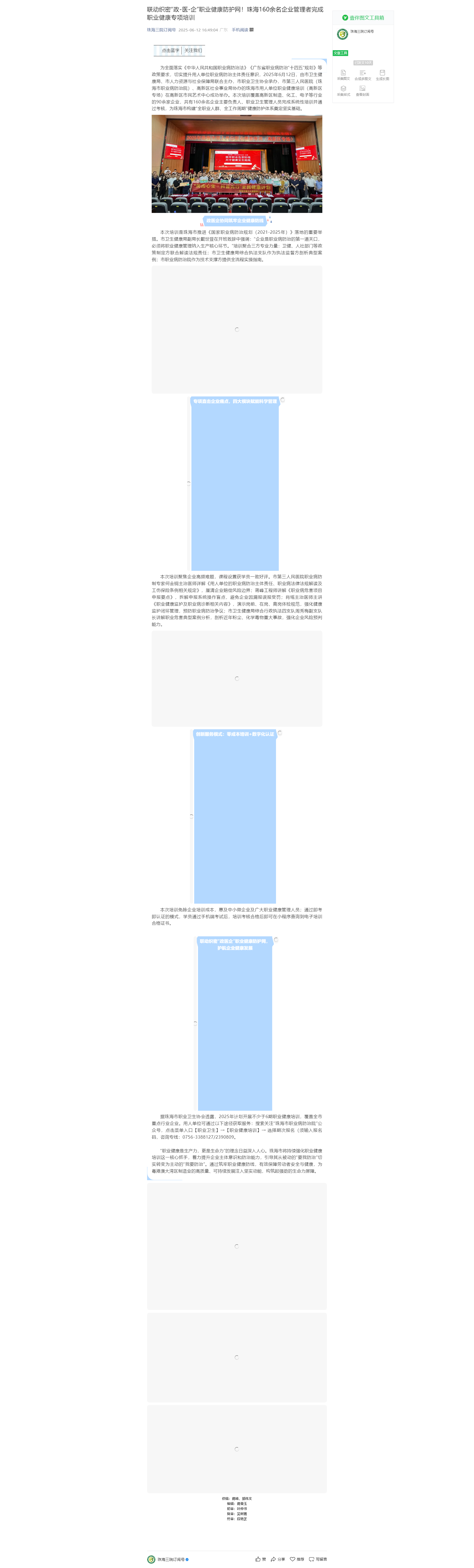 联动织密“政-医-企”职业健康防护网!珠海160余名企业管理者完成职业健康专项培训