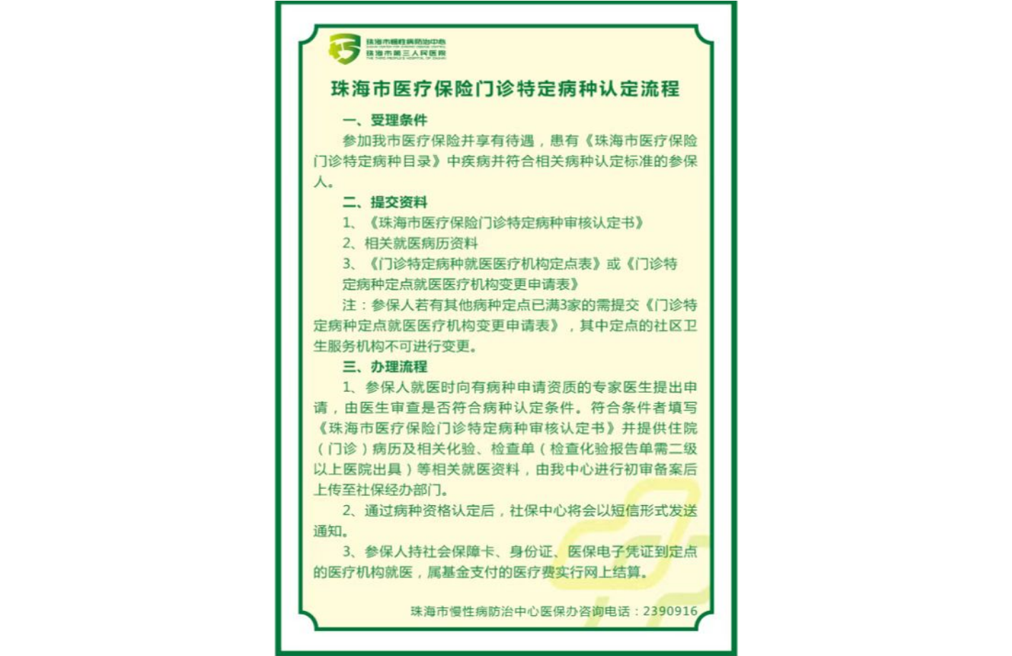 珠海市医疗保险H次元特定病种认定流程