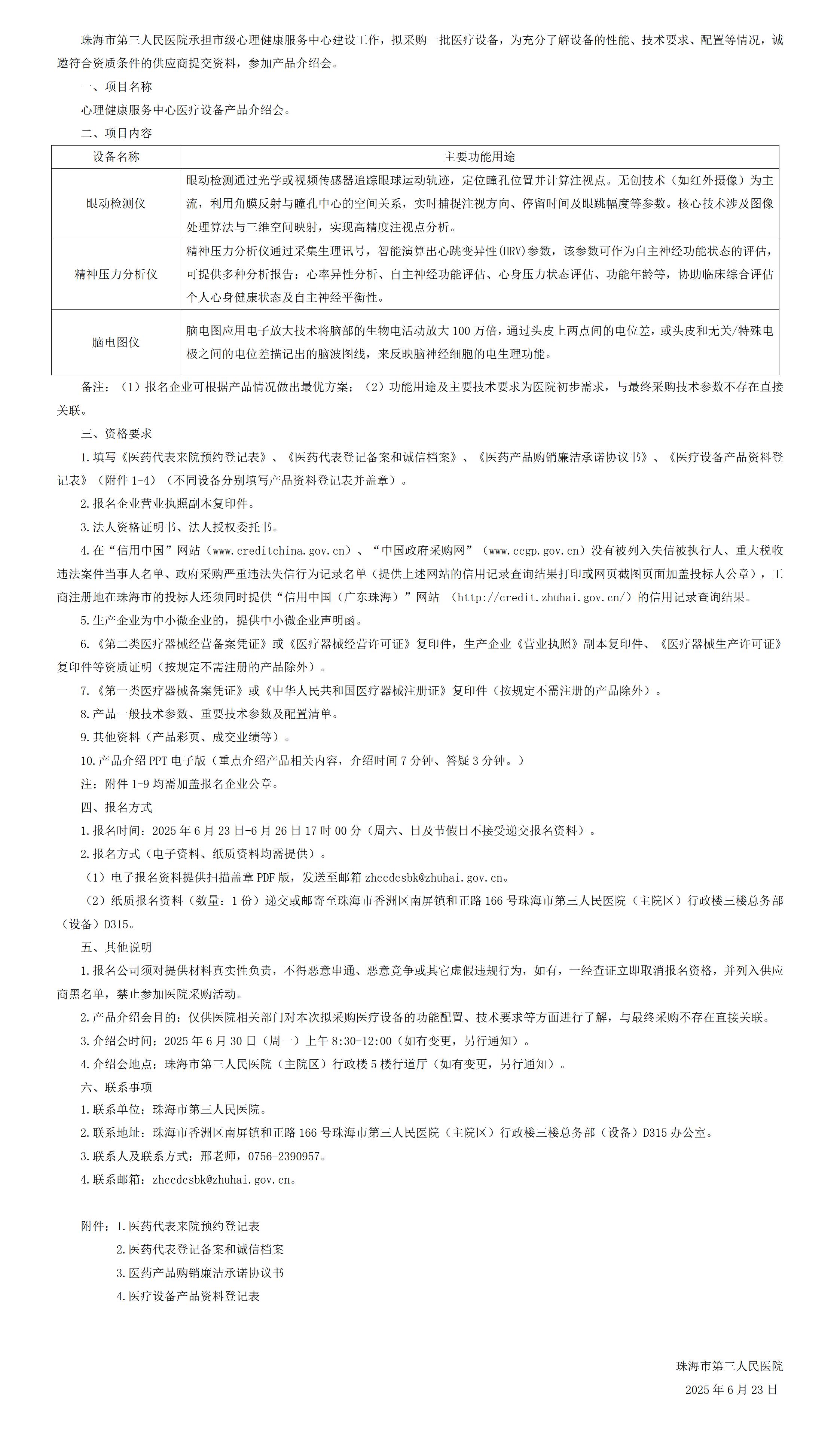 医德医风、招投标举报电话:0756-2390917